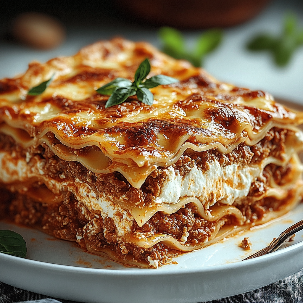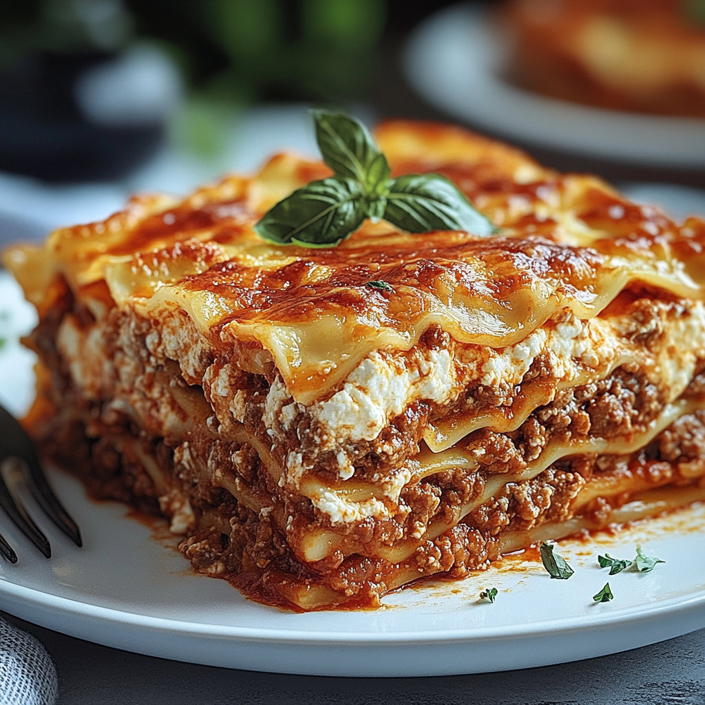 A classic lasagna recipe featuring layers of rich meat sauce, creamy ricotta, and gooey mozzarella cheese.