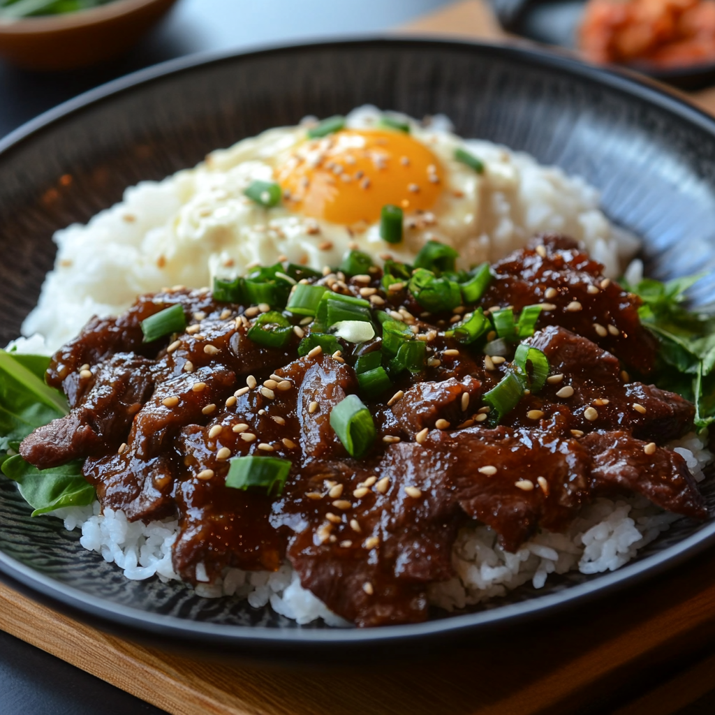 - Serve bulgogi over a bed of steamed rice. Top with sliced green onions and sesame seeds for added flavor and visual appeal.