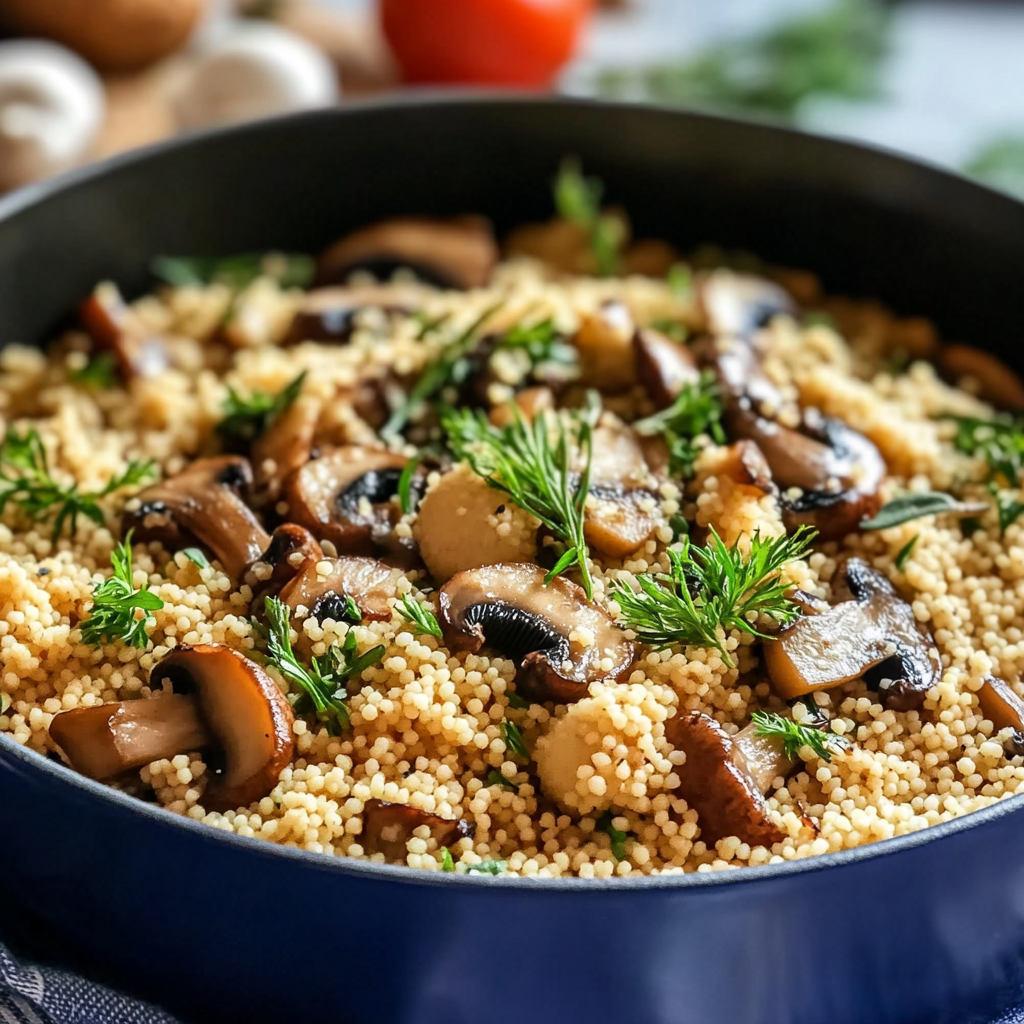 Mushrooms Couscous with Herbs is a delightful, comforting dish that combines fluffy Moroccan couscous with savory sautéed mushrooms and vibrant fresh herbs. This quick and easy recipe is perfect for busy weeknights or special gatherings, as it brings together an irresistible blend of flavors in just 30 minutes. The earthy richness of the mushrooms paired with aromatic garlic and herbs creates a wholesome meal that can be served as a main course or an impressive side dish. Light yet satisfying, this recipe is sure to become a favorite in your household. Enjoy it alongside grilled chicken or roasted vegetables for a complete dining experience.
