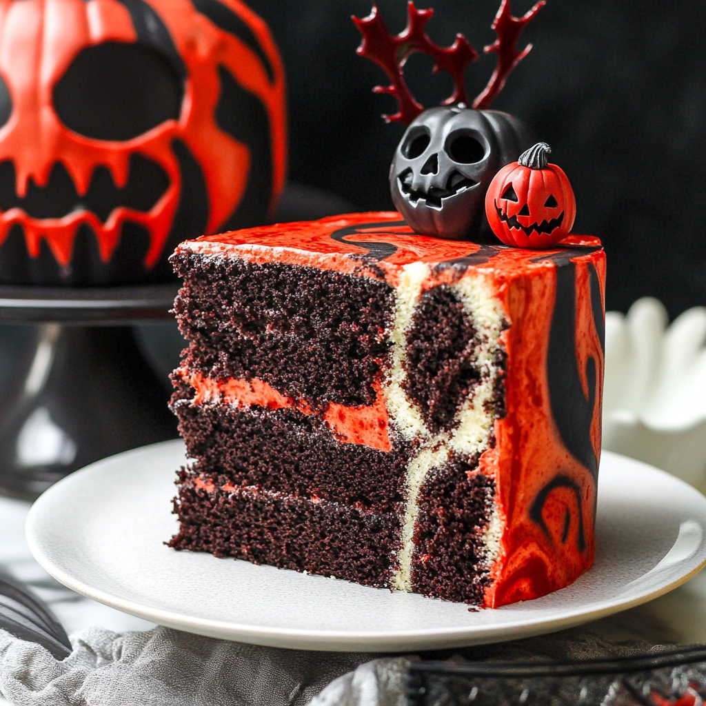 Serving your Spooky Halloween Marble Cake can be just as fun as making it. This cake’s striking colors and decorations make it a centerpiece for any Halloween gathering. Here are some creative serving suggestions to elevate your dessert experience.