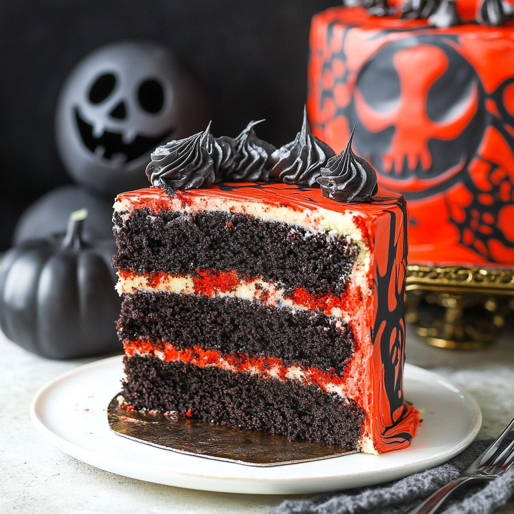 - Eye-catching design: The striking red and black colors make this cake a perfect fit for Halloween celebrations.