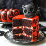- Slice and Layer – Cut the cake into thick slices and layer them on a spooky-themed platter for an eye-catching display.