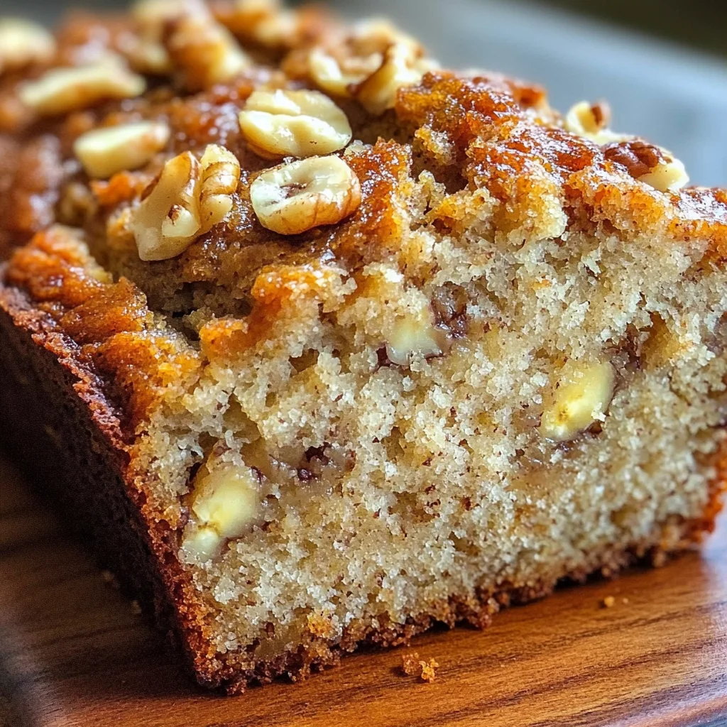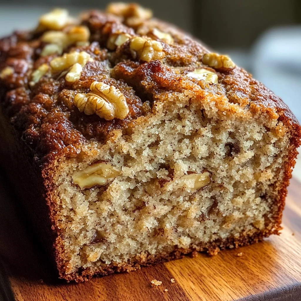Golden banana bread with ripe bananas, buttery flavor, and a hint of spice—delicious warm or cool.